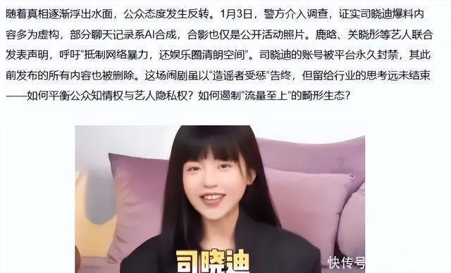 1月4号,司晓迪的悉数酬酢账号都被永久封禁,警方也发了通报,说她的爆料大多是造谣的,聊天纪录是AI合成的,合影是盗用的公开像片,如故涉嫌诽谤。 一场闹得沸沸扬扬的爆料大戏,临了以她被封、警方介入辨别,熟练自导自演的闹剧。
