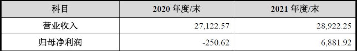 从上表可见,刊行东谈主2020年度已矣归母净利润为-250.62万元,期后的2021年度则扭亏为盈完通俗利润6,881.92万元,净利润同比增长近30倍。也与说明期三年累计完通俗利润19,598.78万元反差可能不小。