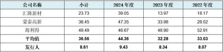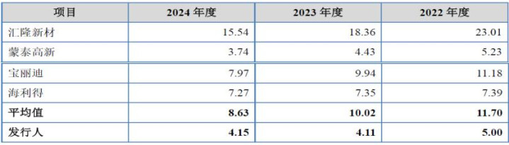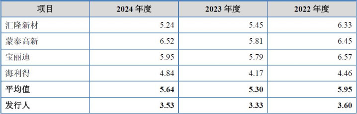 从上表可见,刊行东谈主应收账款盘活率分手为5.00、4.11、4.15,真实为可比公司中的最低值,仅在2024年度略优于蒙泰高新,而蒙泰高新自己2024年度归母净利润为-6,454.60万元,为可比公司中独一家不盈利企业。总体而言刊行东谈主应收账款盘活率水平仅为可比公司平均值11.70、10.02、8.63的一半操纵。