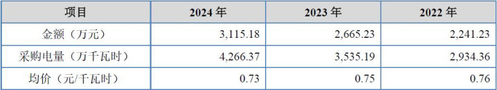 对于刊行东谈主盈利能力可能失果真问题,咱们也不错从制造用度数据端加以分析。招股书中暴露的刊行东谈主主要采购的动力为电力,其电力采购情况,如下表所示: