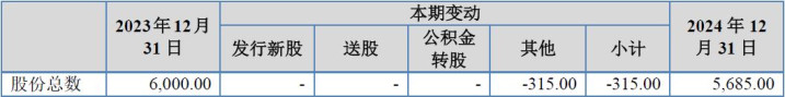 另一方面,在刊行东谈主通盘高额大进的盈利之下,说明期内刊行东谈主股本数发生了减少的非同小可变化,刊行东谈主暴露的2024年度的股本变动情况,如下表所示:
