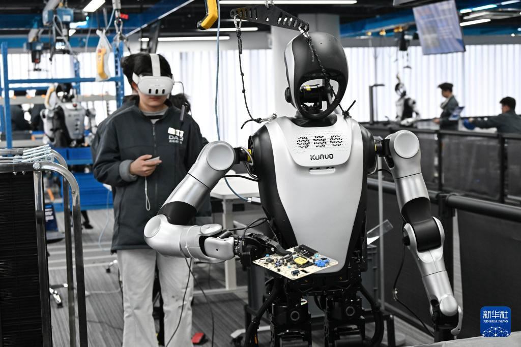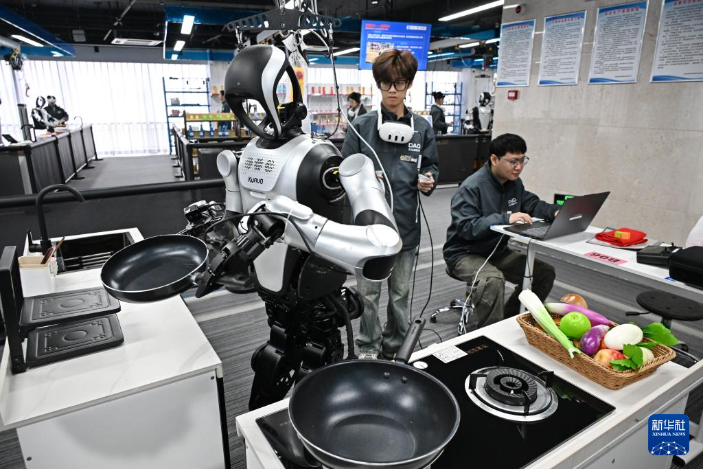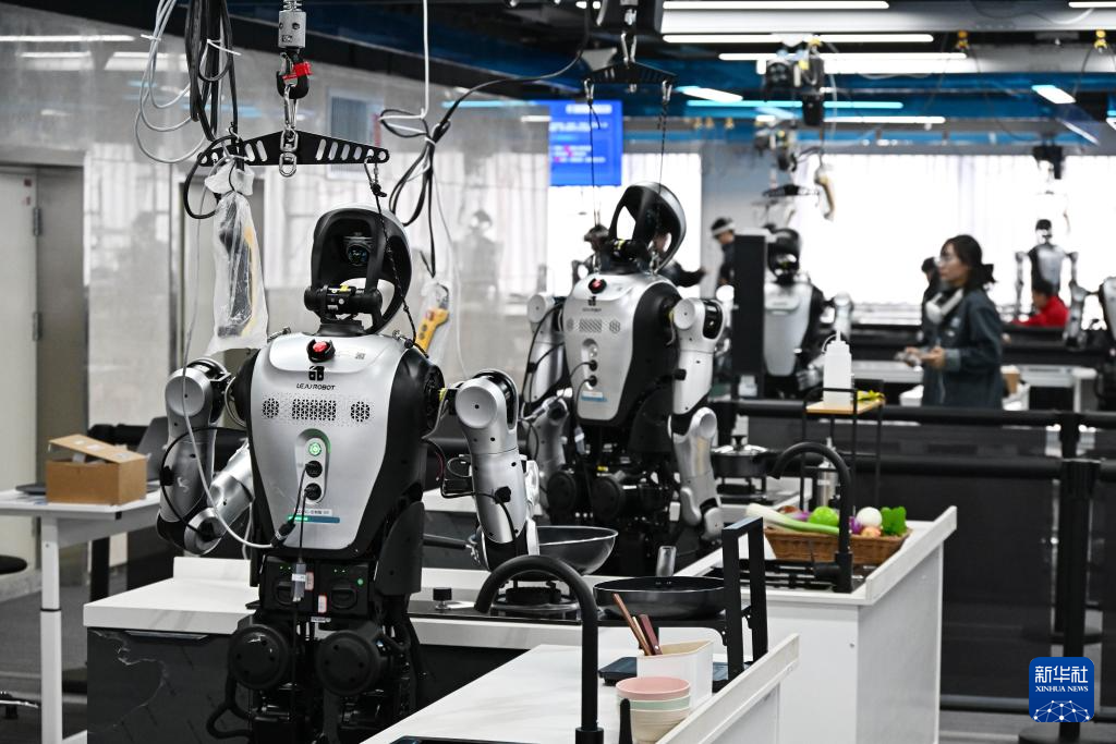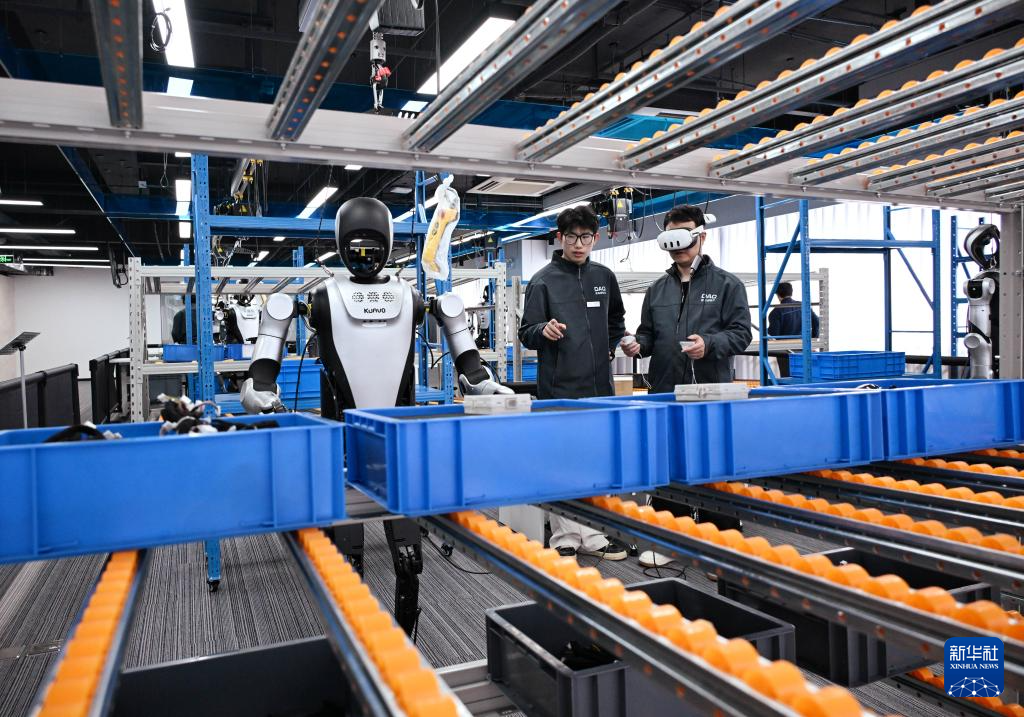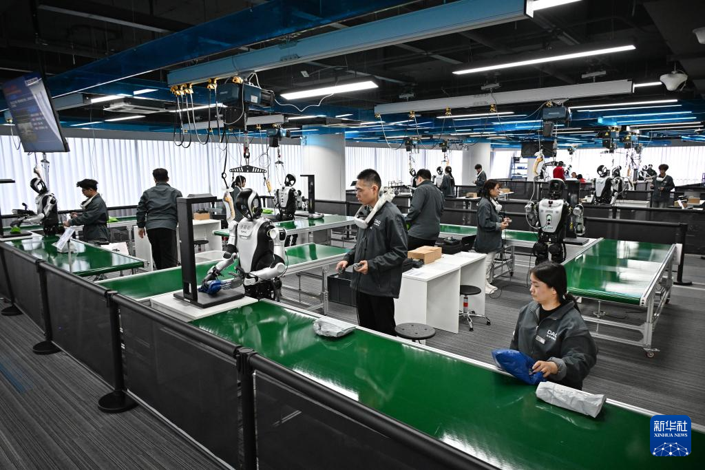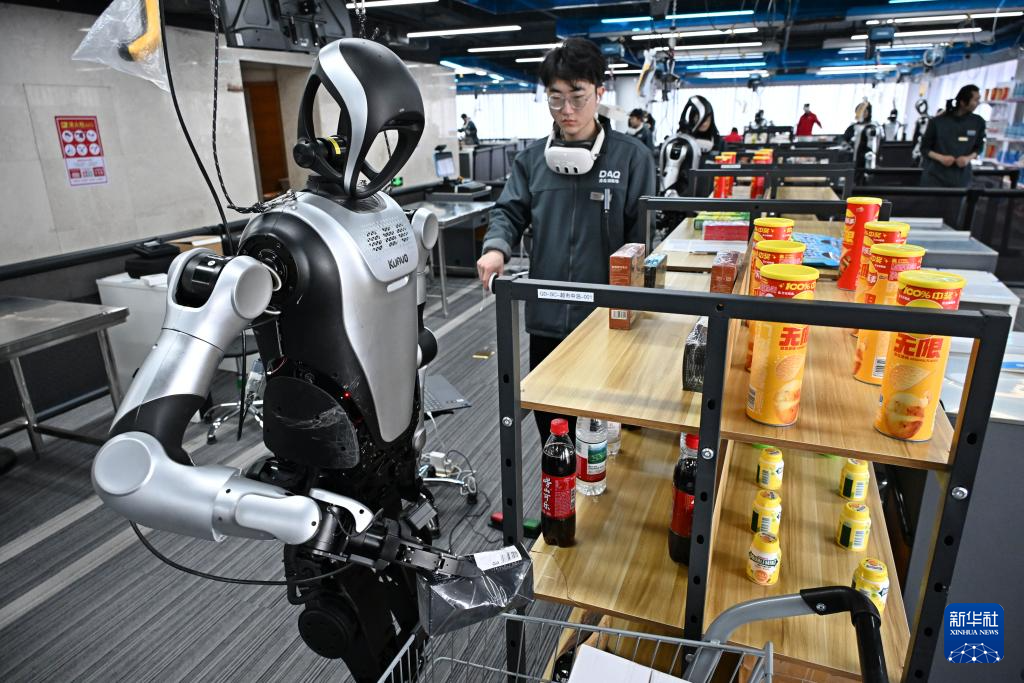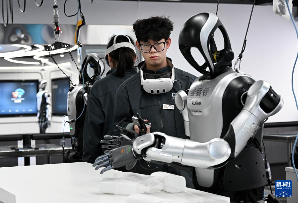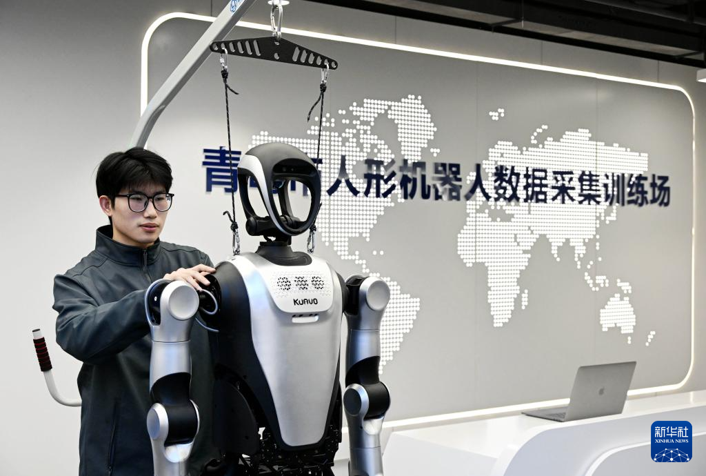 杏彩(XingCai)官网平台在青岛市东谈主形机器东谈主数据蚁集锻练场,责任主谈主员对东谈主形机器东谈主进行锻练和数据蚁集。 新华社记者 李紫恒 摄" />
