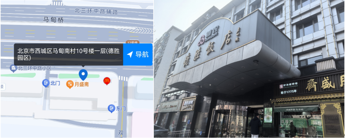 另据《天眼查》阐发,“北京天中祈华新材料有限公司”的琢磨地址为“北京市西城区马甸南村10号楼一层(德胜园区)”,高德舆图阐发这一地址位于北三环中路马甸桥东南侧,毗邻月盛斋店,但前去该方位所在位置能否发现,除一楼部分餐饮门店外,整栋楼均属于德胜饭铺,并未能找到“北京天中祈华新材料有限公司”这家年交易额数千万元的公司的身影。