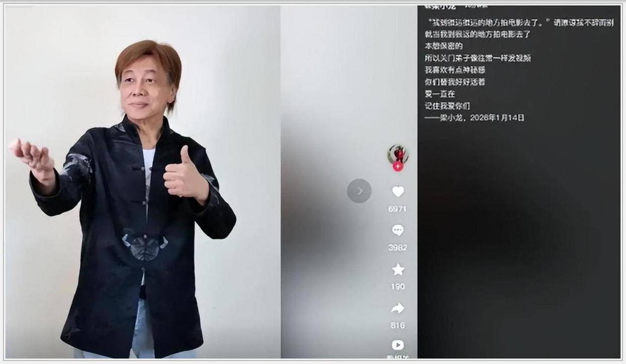 2026年1月14日 梁小龙在深圳离世,享年77岁。 前一天1月13日,他还和一又友吃羊肉暖锅 精神禁闭 竖大拇指拍照。