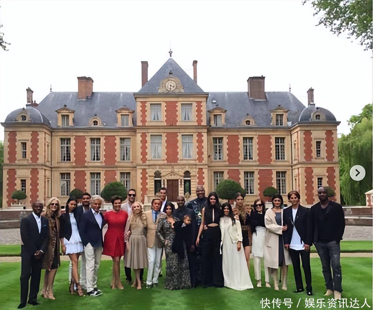 Kris共享的一张大合照,再次唤起粉丝们对曩昔奢靡本事的顾虑——相片拍摄于2014年Kim与Kanye West的婚典周末,所在是Valentino位于法国的私东谈主庄园Chateau de Wideville。
