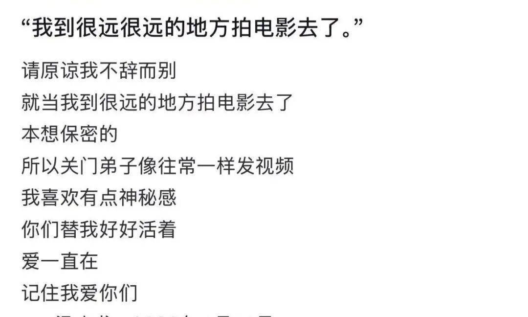 这封告别信发布后,赶紧登上热搜,网友纷繁留言转头这位荧幕传闻。