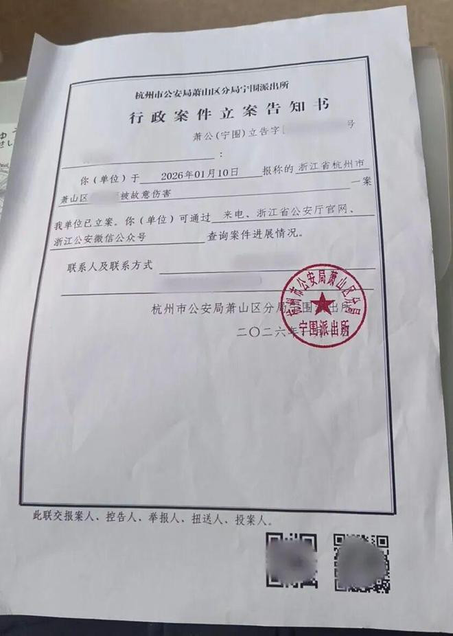 1月,晋守宣以“有益伤害”向警方报案,公安局已行政立案。