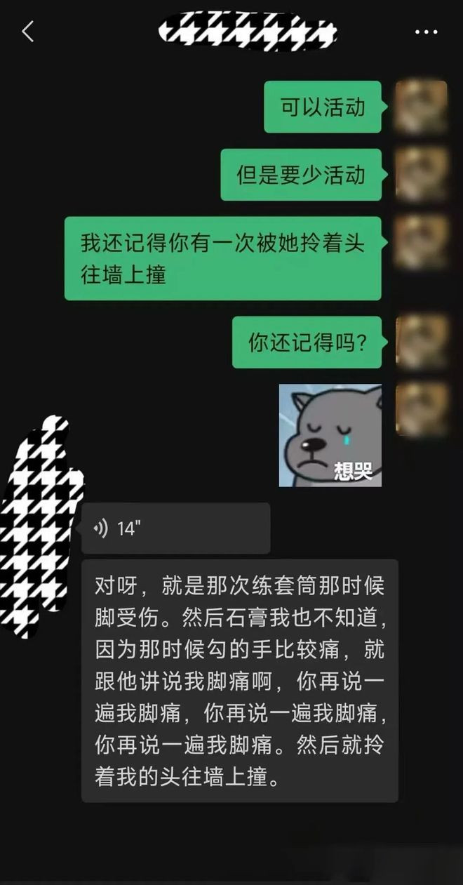 晋守宣向南风窗展示了一段微信聊天截图。对话自满,小佳曾通过“队友”试图回忆平方西宾中被老师打骂的更多细节,这位“队友”说起,二东谈主老是被老师扯头发、扇耳光,威迫“你再说一遍我脚痛”、拎着头往墙上撞等。
