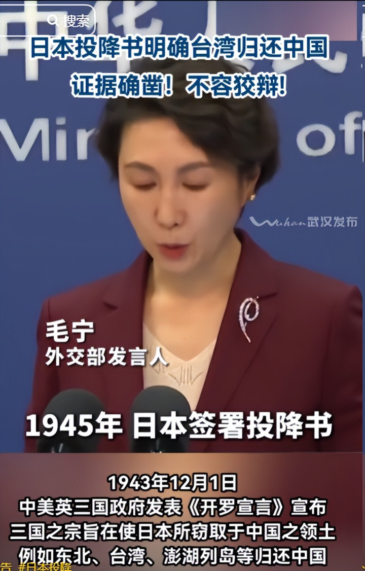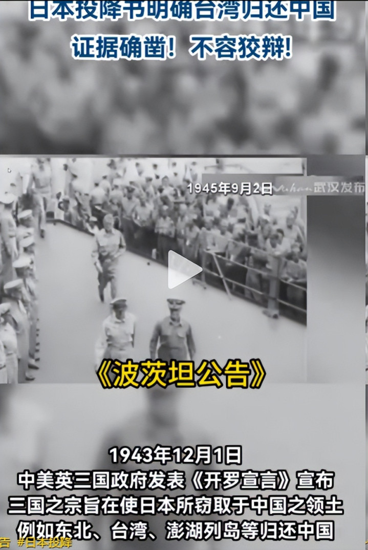 这不是什么政事标语,而是被一系各国际法律文献锁死的铁的事实,里面明确纪律,日本必须将窃取于中国的邦畿,包括台湾和澎湖列岛,返璧中国。
